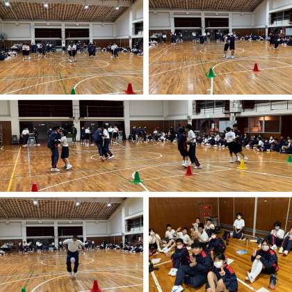 室内レクリエーションを行いました。 第一競技の風船リレーの様子です。