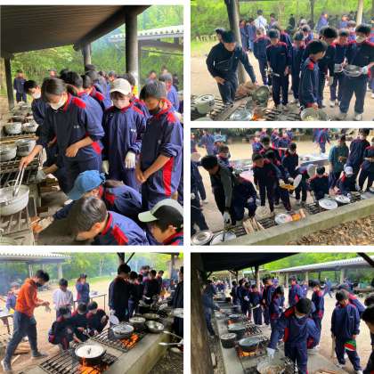 本日は野外炊飯を行いました。 班で協力をしてカレーを作ります。