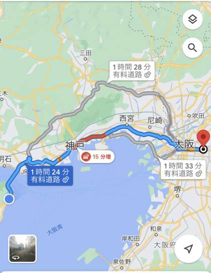 淡路SAでトイレ休憩を済ませて、城東中学校に向かっています。18時過ぎに中学校到着予定です。