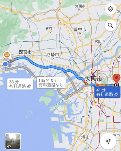 1号車は甲子園付近、4号車は写真の場所です。渋滞で少し遅れています。