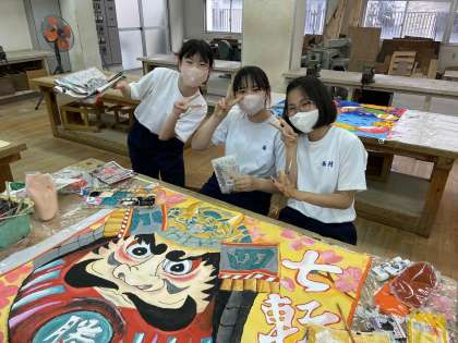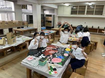 放課後、体育大会の学級旗制作が佳境に入ってきました。細かいところまできれい時間をかけて色をつけていました。