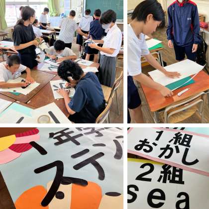 1年生の文化祭委員は、展示作品の看板の作成をしました。9月の文化祭に向けて、みんな一生懸命取り組みました。