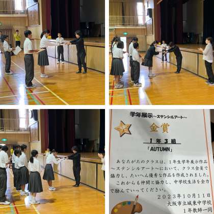 本日の学年集会で、文化祭作品展示の表彰を行いました。