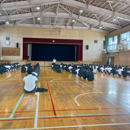 保護者の進路説明会の前に、3年生の生徒は6時間目に集会を行い、進路の話を聞きました。