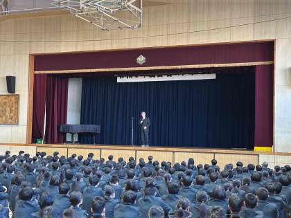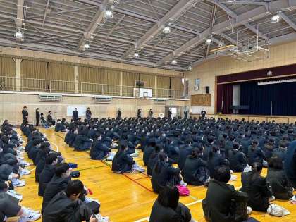 校長先生から、1月1日の震災についてふれ、自分が勉強してさまざまなことを学んで周りの人を助けることができる。自分が成長することによって、誰かが喜ぶ。まず、自分が一生懸命頑張って、今より成長し自分が幸せになることで、周りの人を幸せにすることができる。