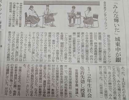 吹奏楽部の全国大会の様子が新聞記事に載りました。