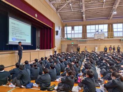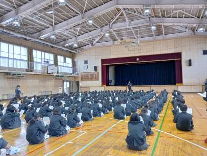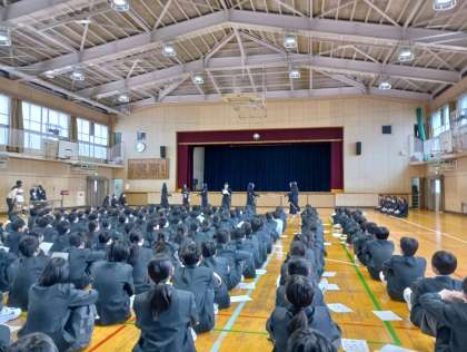 1時間目は、全校生徒が体育館に集まり、城東中学校のルールを確認しました。
