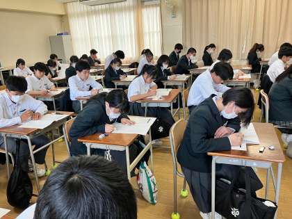 3年生は、1限目に「国語」・2限目に「数学」の全国学力テストの問題を受けています。