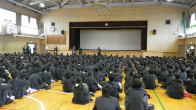 地震による津波を想定した避難訓練の後、保護者向けの進路説明会と大忙しの半日でした。