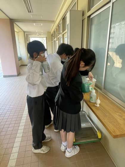 毎週火曜日の昼休みに、保健委員は校内の石けんの点検と補充作業を行っています。