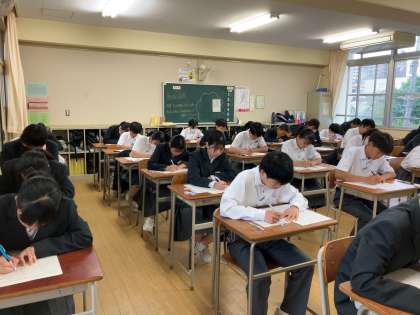 テスト開始のチャイム・合図とともに、時間一杯、最後まであきらめることなく、テストに取り組んでいました。