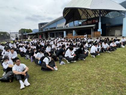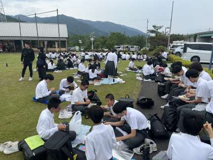 わずかに雨が降っていますが、外で昼食を取る事ができました。