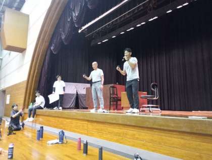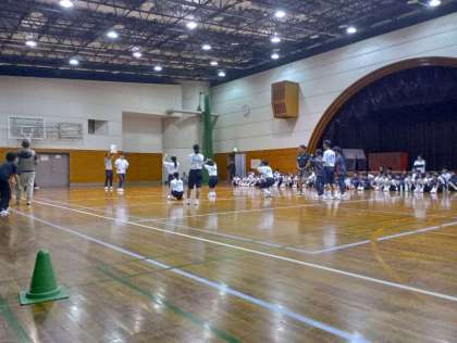 風船を使った競争や、ジェスチャーだるまさんが転んだなど、盛り上がりました。先生たちの対決でどちらが勝つかを決める○×クイズもしました。
