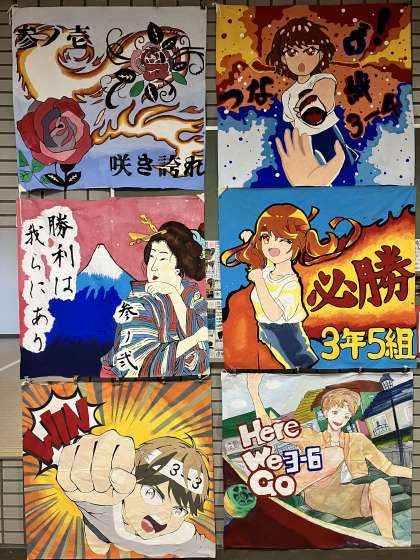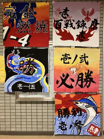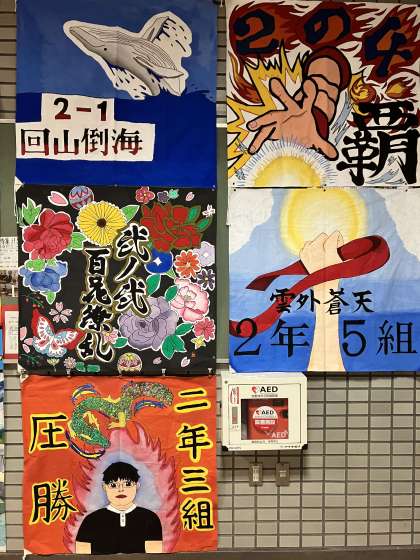 正門入口すぐ(ピロティ)に体育大会まで掲示しています。