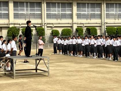 吉田先生からは、最近集会に遅刻する人が多い。今日も100人近くの人が時間までに正門をくぐれなかった。毎週月曜日は全校集会があるとわかっているはず。当たり前のこと、みんなができること、普段の学校生活をしっかりやっていこう。