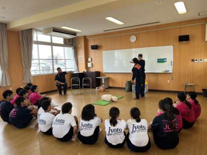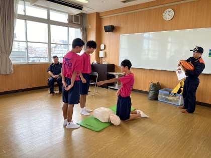 放課後、城東消防署の方に来ていただき、生徒向け(水泳部)に救急救命講座を行っていただきました。生徒たちは、訓練とは思えないほど、的確にできていました。