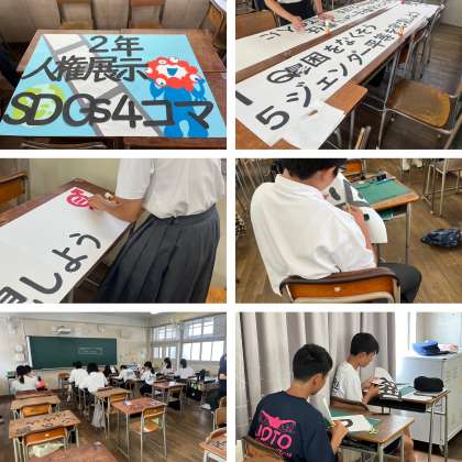 学級代表と文化委員が集まって、2学期の文化祭の展示に使う看板を作りました。 暑い中一生懸命頑張って予定よりも早く解散することができました。