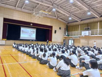 今日、1年生は朝の学年集会で、校外学習についてのお話がありました。