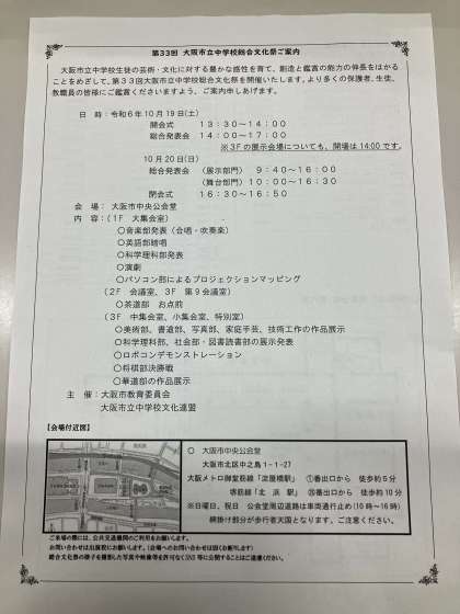 明日から2日間、大阪市内の文化クラブが中央公会堂で作品を出展します。
