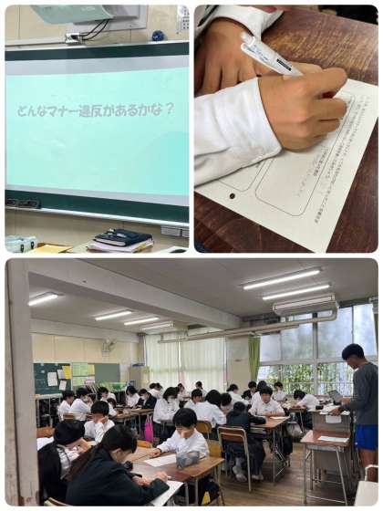 1年生は、今日の道徳の時間、公共マナーについての学習をしました。