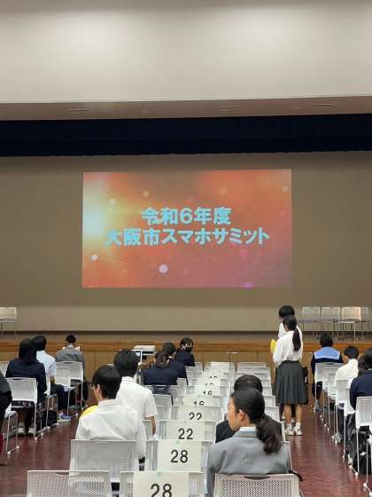 11月2日西成区民センターにて「大阪市スマホサミット」が行われ、本校を代表して後期生徒会の会長・副会長2名が参加しました。