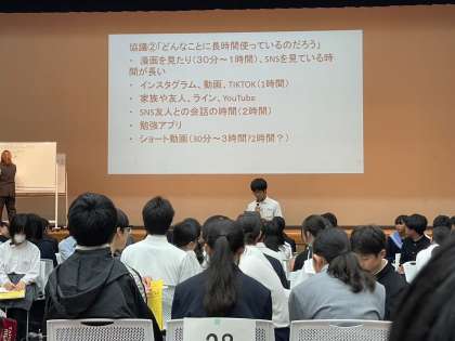 第二部では奈良教育大学の教授によるスマホへの付き合い方の講義とそれを踏まえて各学校の生徒が意見交流をして発表をしあいました。