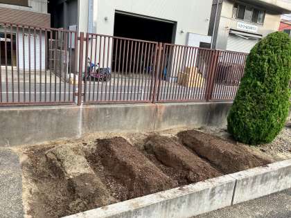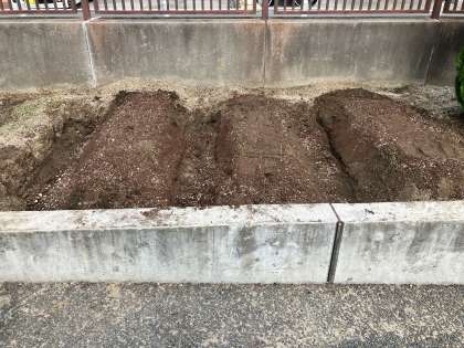 10月に入ってから、西門(フレンドマート側)近くの植え込みの一角を、ひまわり学級の教員と生徒で開拓し、「仮 ひまわり農園」を作っています。