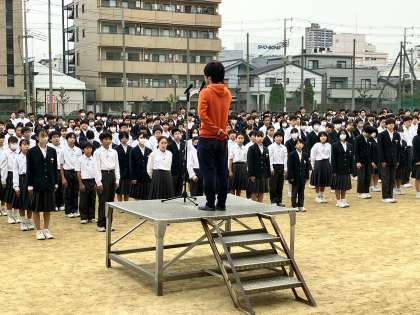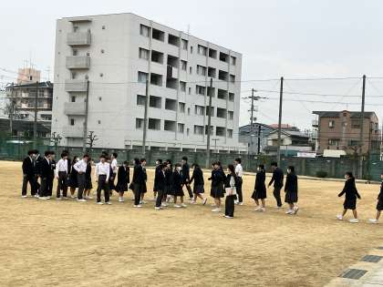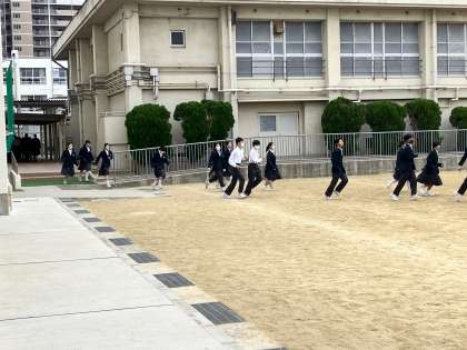 6時間目、火災を想定した避難訓練を行いました。生徒は避難放送に従い、整然と速やかに訓練を行えました。