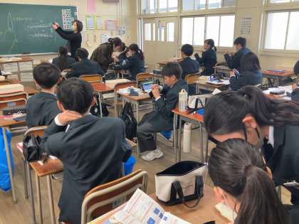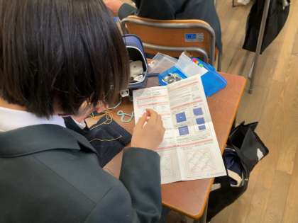 1年生は、家庭科の授業で「刺し子のコースター」を制作中です。