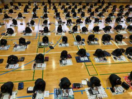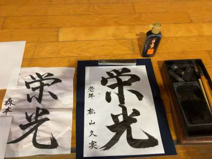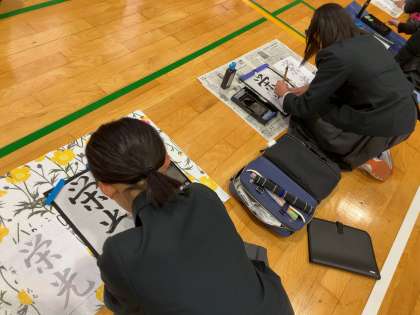 お題は「栄光」の2文字をです。厳粛な雰囲気の中で全員でていねいに書きあげました。