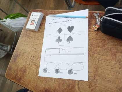 1年生はキャリア教育の一環で、昨日と今日の2日間、各クラスごとに『SPトランプ』を行っています。