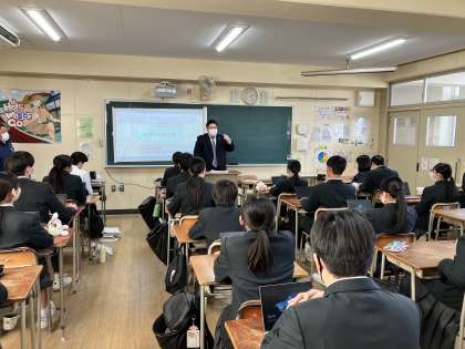 6限目、大阪弁護士事務所所属の弁護士の方6名に来校いただき、特別授業を行いました。 「皆さんが加害者・被害者いずれの立場からも犯罪に巻き込まれないために気をつけること」についてお話していただきました。