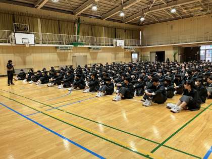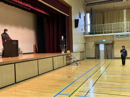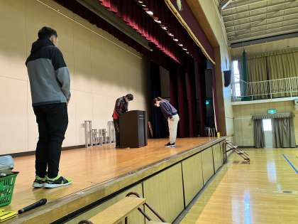 今日は、まだ椅子など無い状態ですが先生方がお手本を見せながら、所作や座席位置の確認、入退場の流れの確認などを練習しました。