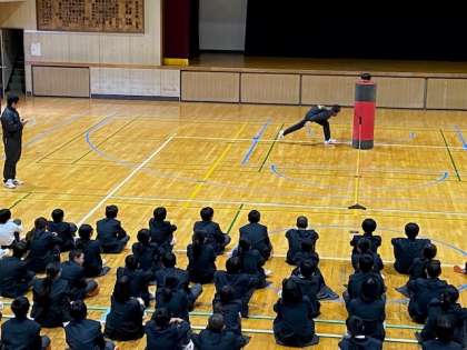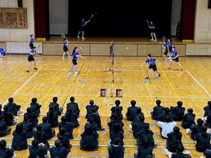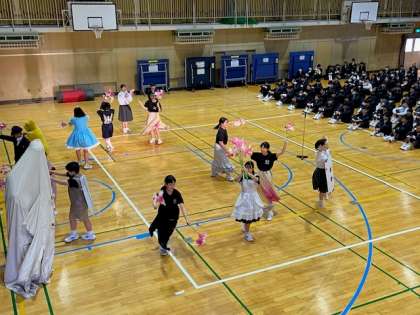 城東中学校には9つの運動部と4つの文化部があり、放課後、熱心に活動しています。6限目、1年生の部活動入部に向けて部活動紹介を行いました。どのクラブも工夫を凝らして練習風景や活動の様子を伝え、入部を呼び掛けていました。