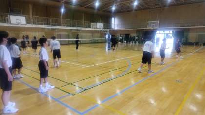 あいにくの雨のためグラウンドの状況が悪いため、本日は体育館でのバレーボール部とバスケットボール部の仮入部による練習参加が実施されました。