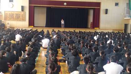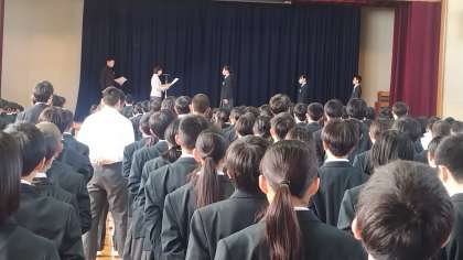 続いて生活指導の先生からは、特に1年生の皆さんに対し、先日、集団行動の練習を行いましたが、今日の集会では礼をするときの所作としてのタイミング1・2・3で頭を上げるがまだまだ不十分であること、整列が乱れるなど集団行動が上級生のように整然とできていないことと、授業開始前にばらばらと入室している傾向が上級生に見られるため、早めに着席し授業が受けられるようにしましょうとのお話がありました。