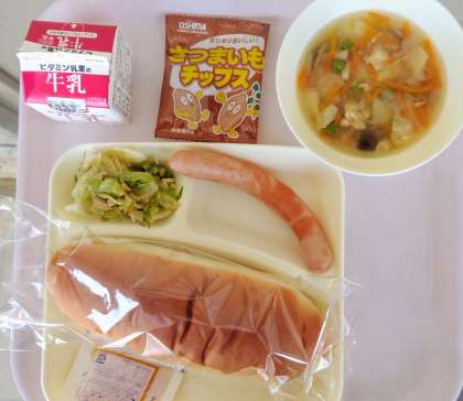 おさつチップス コッペパン 牛乳 アプリコットジャムです。