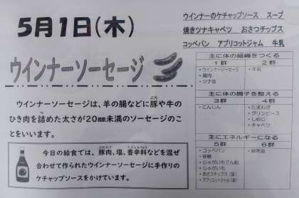 今日もさわやかに晴れ、スポーツ日和ですね。元気いっぱい体力を使い、おなか一杯給食を食べてください。