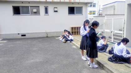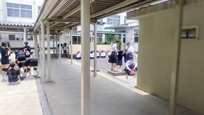 テストが終わり、今度は部活動ですね。その前にみんなで楽しく持参のお弁当で腹ごしらえ❣