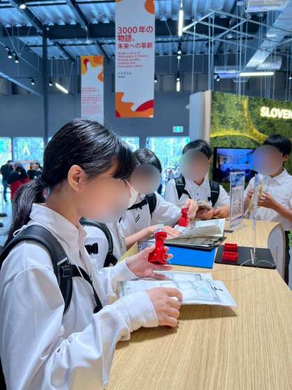 2年生は班活動を開始し、各国パビリオンを見学しています。