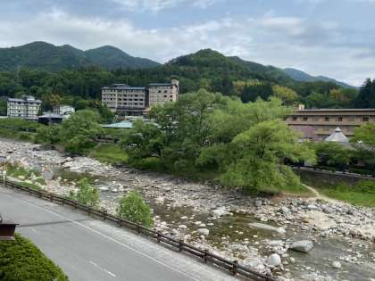 緑豊かな自然の中で過ごした修学旅行も終盤に。各地区へ迎えのバスが向かっています。