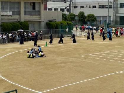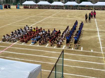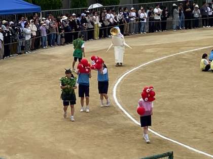 昼休憩が終わり、午後の部がはじまりました。最初のプログラムは部活動行進です。