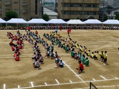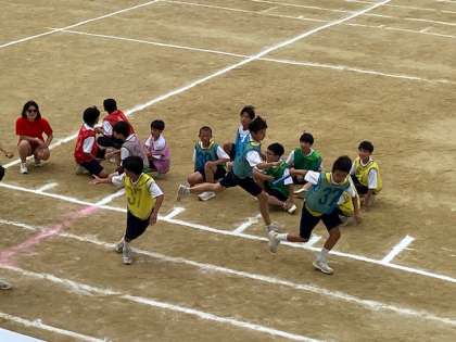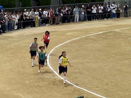 1年生学年種目は学級対抗全員リレーです。一つのバトンをクラスでつなぎ、トラックを疾走する仲間に熱い声援が送られました。