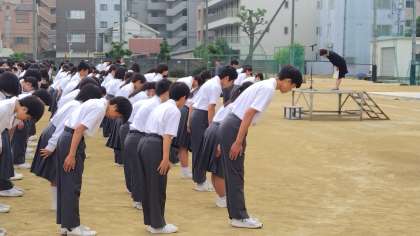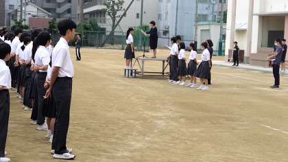 今日の校長先生のお話は、「体育大会のみなさんの頑張りをしっかり見せてもらいました。特に1年生の皆さんは入学以来初めての体育大会でとても疲れたのではありませんか。入学されてから今日まであっという間の2か月、その間に初めての中間テストや日々の学校生活で集団での行動の大切さ、また、連日の体育大会の練習などとても慌ただしく過ごされたと思いますが、これからの厳しい季節、体調管理をしっかりして元気に中学校生活を送ってほしいと思います。