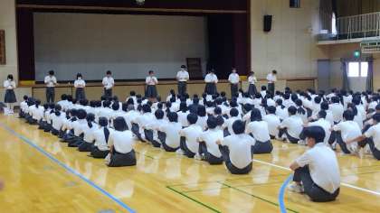 次に風紀委員から様々な風紀チェックがありました。決められたことをしっかり守り、みんなが気持ちよく学校生活をおくれるよう日々心掛けてください。集会は以上でした。