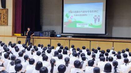 本日の4時限に城東警察署少年係から講師をお招きし、体育館にて薬物乱用防止教室を開催しました。