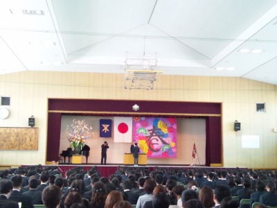 4月3日(木)穏やかな春の陽射しのもと、やや大きめの真新しい制服に包まれた216名の新入生が入学して来ました。1学年は6クラスになります。
