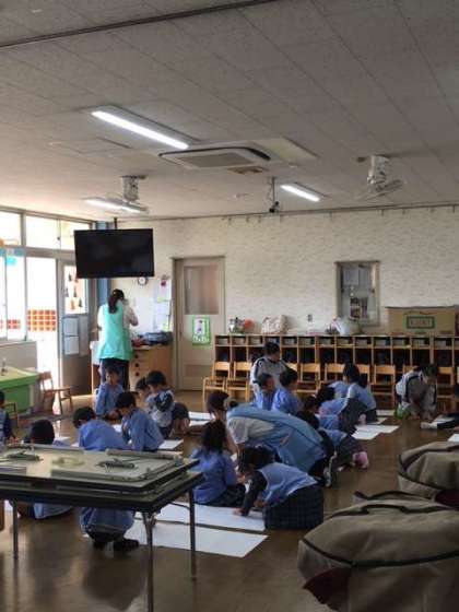 ・諏訪保育園で活動しました。今日は絵を書いたり工作したりする手伝いをしました。生徒に聞くと、子どもたちがすごくかわいいと答えてくれました。