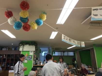 Panasonicエイジフリーで利用者さんたちとカルタをしています。