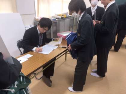 本日、3年生は私立高校へ願書を出願しに行きました。緊張した面持ちで体育館に集まり、先生の話を聞いた後それぞれの学校に向かいました。受験番号をもらい、いよいよ本番に向けてラストスパートです。悔いのないよう勉強していきましょう。